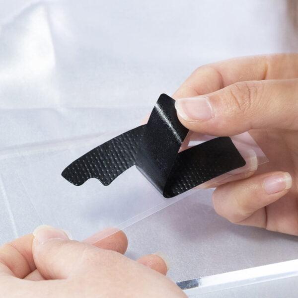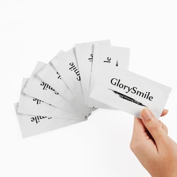 - Nalepite ju na zgornje in spodnje zobe, da se stran, ki vsebuje gel dotika zob