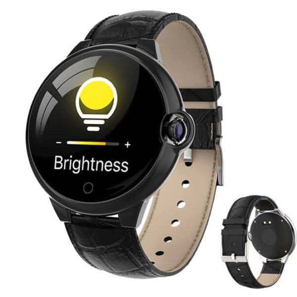 Moška pametna zapestnica ELEGANT je primerna za športne aktivnosti kot tudi za vsakodnevno uporabo. Ima usnjen pašček, ohišje iz nerjavečega jekla in safirno steklo. Je zelo elegantnega videza. Poveže se z vsemi pametnimi telefoni preko Bluetooth povezave in vas opozarja na obvestila iz telefona. Odporna je na vodo in prah (IP67). Na voljo je v dveh različnih barvah.